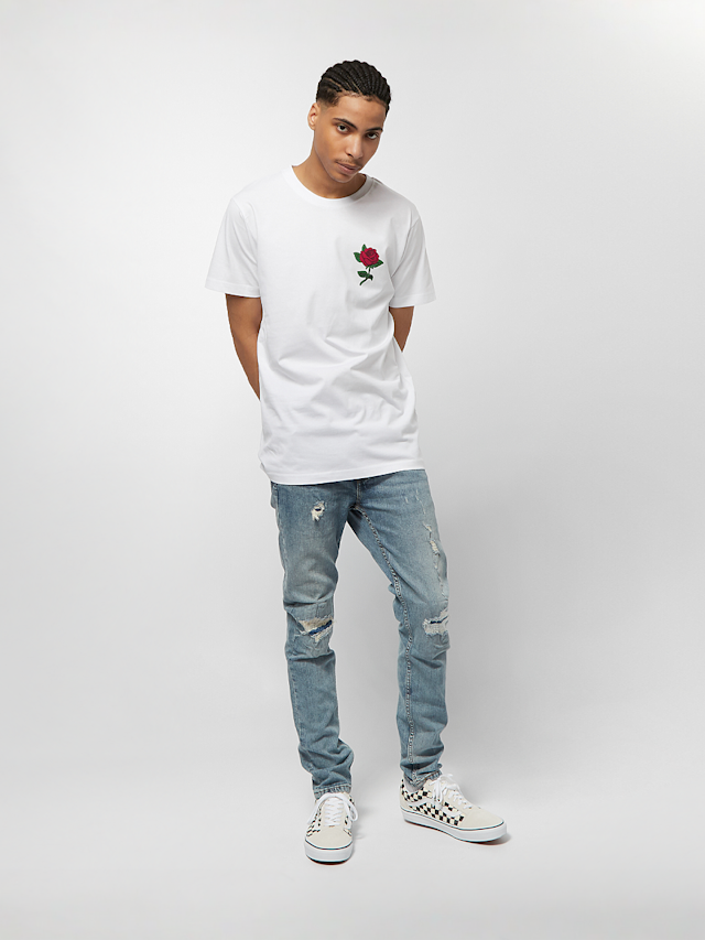 Mister Tee T-shirt with rose print. It has a ribbed crew neck and a regular fit. The white look makes it easy to style with any outfit.